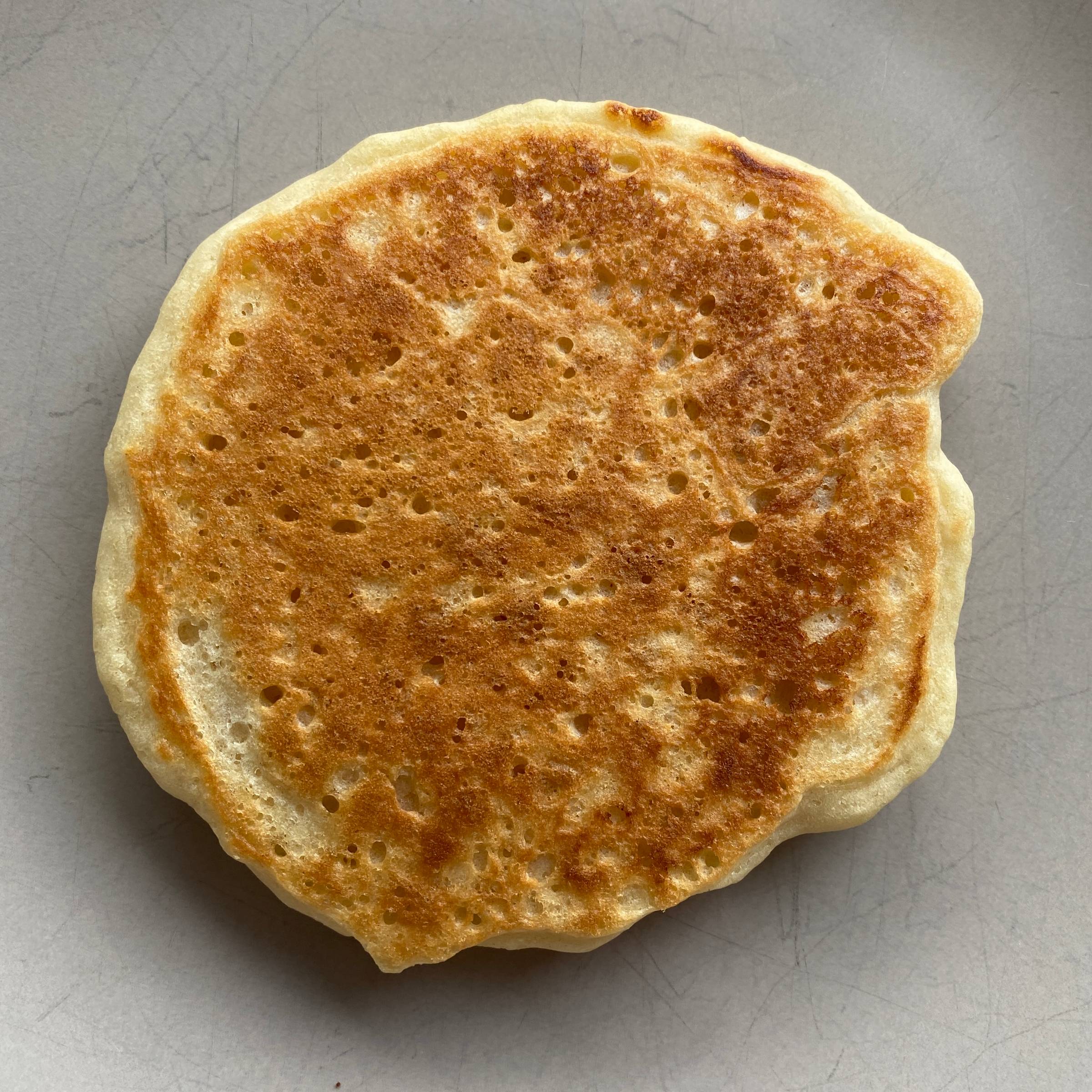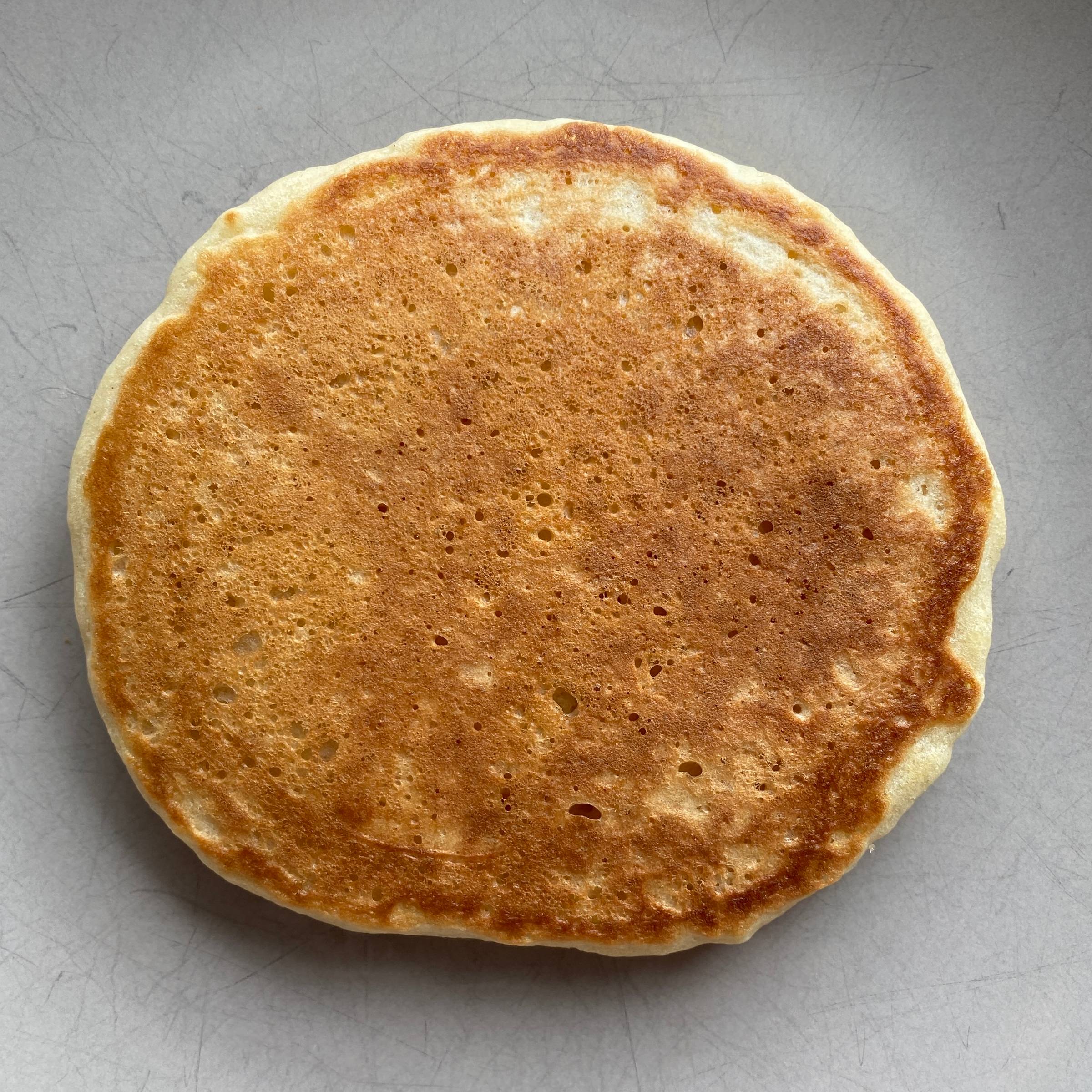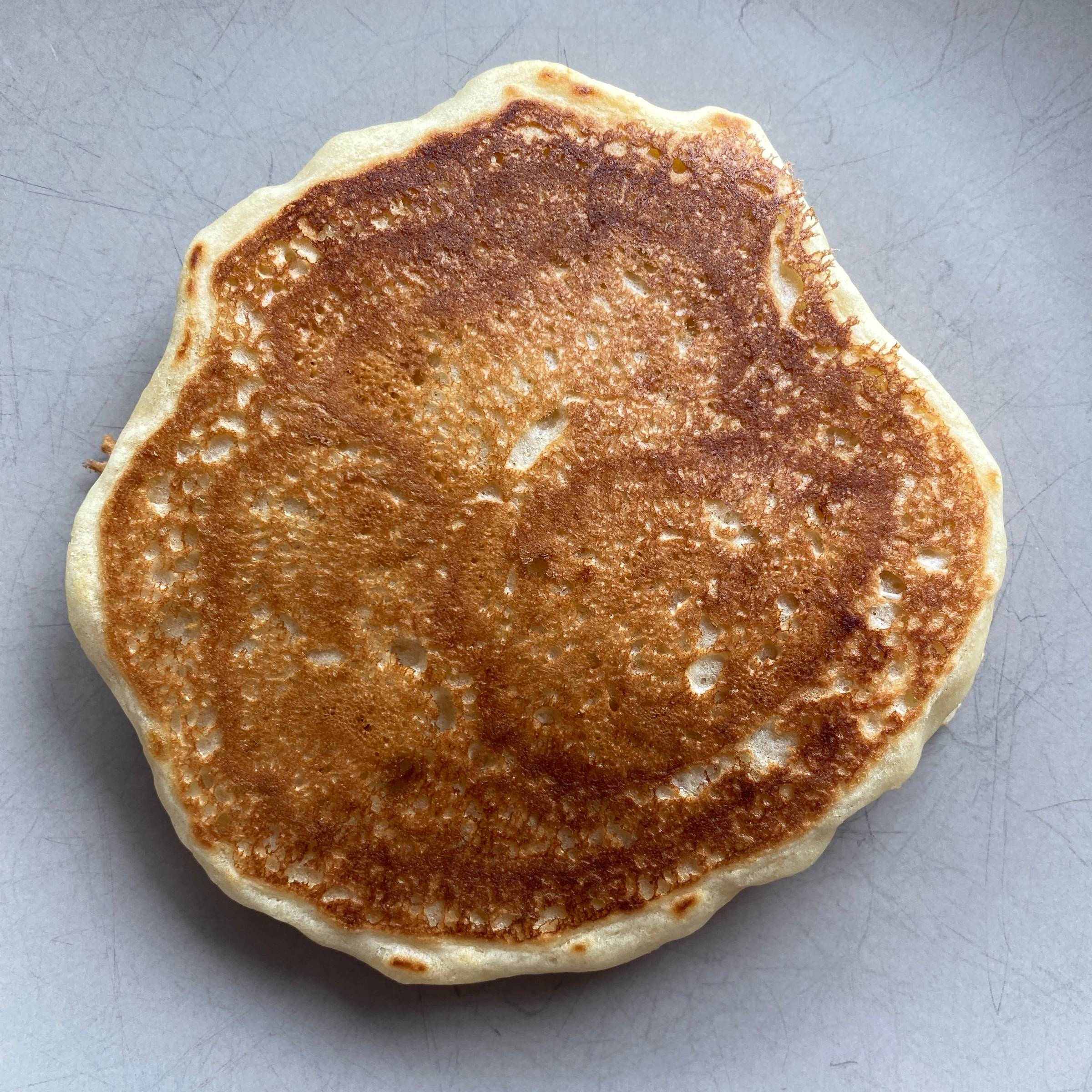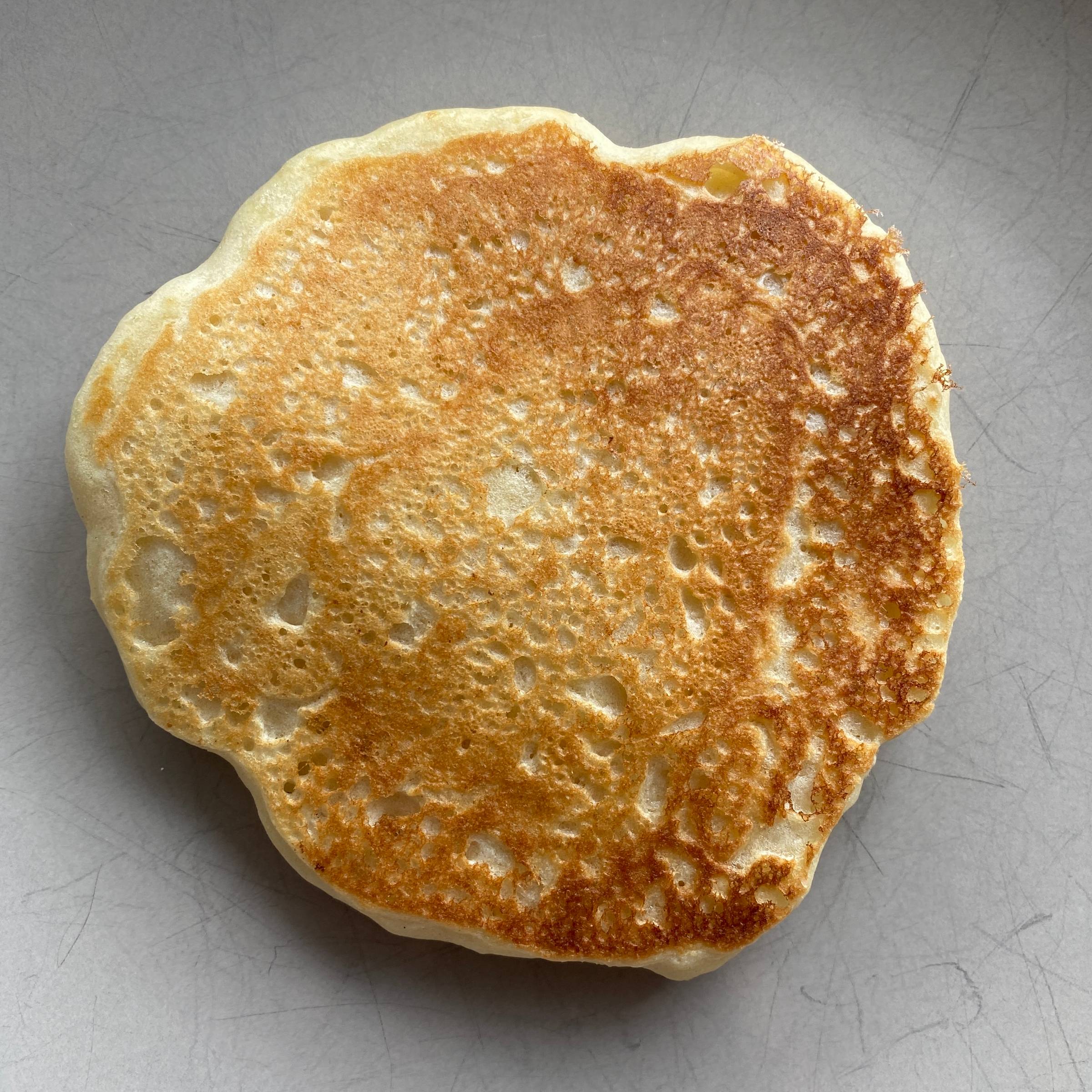 Why is the first pancake always bad?📓 The short answerThe first pancake is often lower quality because the pan hasn't heated evenly or excess grease has pooled, causing a greasy texture or uneven browning. 📚 The long answerThe first pancake has been dubbed the "throwaway", the "dud", or even the "sacrifice to the pancake gods" because of how often it results in a less than ideal flapjack. It's such a widely experienced phenomenon that when I started researching this question, I came across a multitude of borderline philosophical articles applying the "first pancake rule" to life's challenges, in areas like parenting, business, and even dating. I'm here to tell you the first pancake problem (as least in the realm of actual pancakes) can be avoided. Here are the top two first pancake problems and how to fix them. Pancake Problem #1: The first pancake browns unevenly.A common complaint is that parts of the first pancake brown while other spots remain less cooked. Cause: The pan's heat is not evenly distributed.Uneven browning is a sign of uneven heating. In other words, the pan hasn't been given enough time to fully heat up. On a stovetop, the middle of the pan heats up first, followed by the edges. If you don't give your pan enough time to heat up, it can lead to hotter and cooler spots. Solution: Warm up the pan for several minutes before cooking.While there's variation in types of cookware (e.g. stainless vs cast iron), generally speaking you need to heat your pan for several minutes on medium to medium-high heat. If you happen to have an infrared cooking thermometer lying around or are using a griddle, the ideal pancake-cooking temperature is 350-360°F (177-182°C), according to IHOP. Pancake Problem #2: The first pancake is either too greasy or it sticks to the pan.Another common complaint is that the first pancake has a greasy texture or sticks to the pan, often breaking when flipped. Cause: The pan isn't greased properly.People often warm the pan, add grease (oil, butter, etc.), and then pour in the pancake batter. The problem is that the grease pools up instead of coating the entire surface. As the pan heats, its metal expands, creating pores. You need the grease to fill in any pores to create a barrier between the metal and the pancake batter. Otherwise, the pancake batter will fill in those pores and stick to the surface when you try to flip it. But more grease is not the answer. Visible grease spots will be absorbed by the batter during cooking. The pools of grease could also be trapping steam released from the hot batter. These steam bubbles lift the batter from the pan surface, preventing browning. Solution: Wipe away the excess grease with a towel.After adding grease to the pan, wipe away all but a thin layer with a towel. This spreads the grease to fill in all the pores of your hot pan without allowing pools of grease to get soaked up by your flapjack. 🥞 Putting these theories to the test...After researching these theories, I felt I had to test them. And not just because reading and writing about pancakes makes you crave pancakes. But for science. 🫡 To recreate first pancake conditions and control variables, here's how I ran the test: